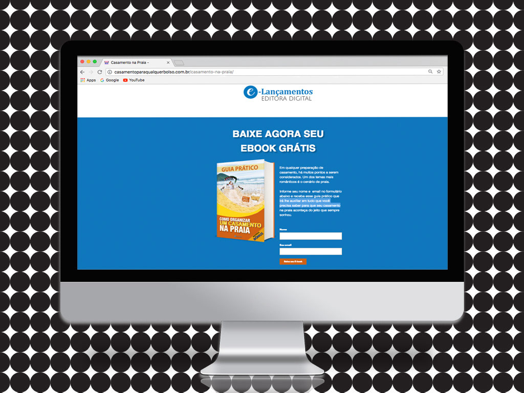 Creation of Landing Page with the goal of delivering free e-book for digital marketing, including mail list scheduling in the MailChimp tool.